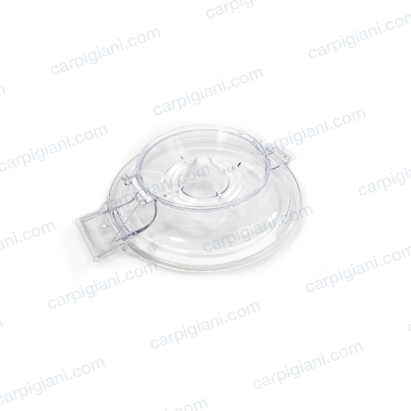 Ergonomic lid with a large hopper for conveniently pouring in ingredients during mixing; transparent and rigid, it is made of an alcohol-proof polymer.