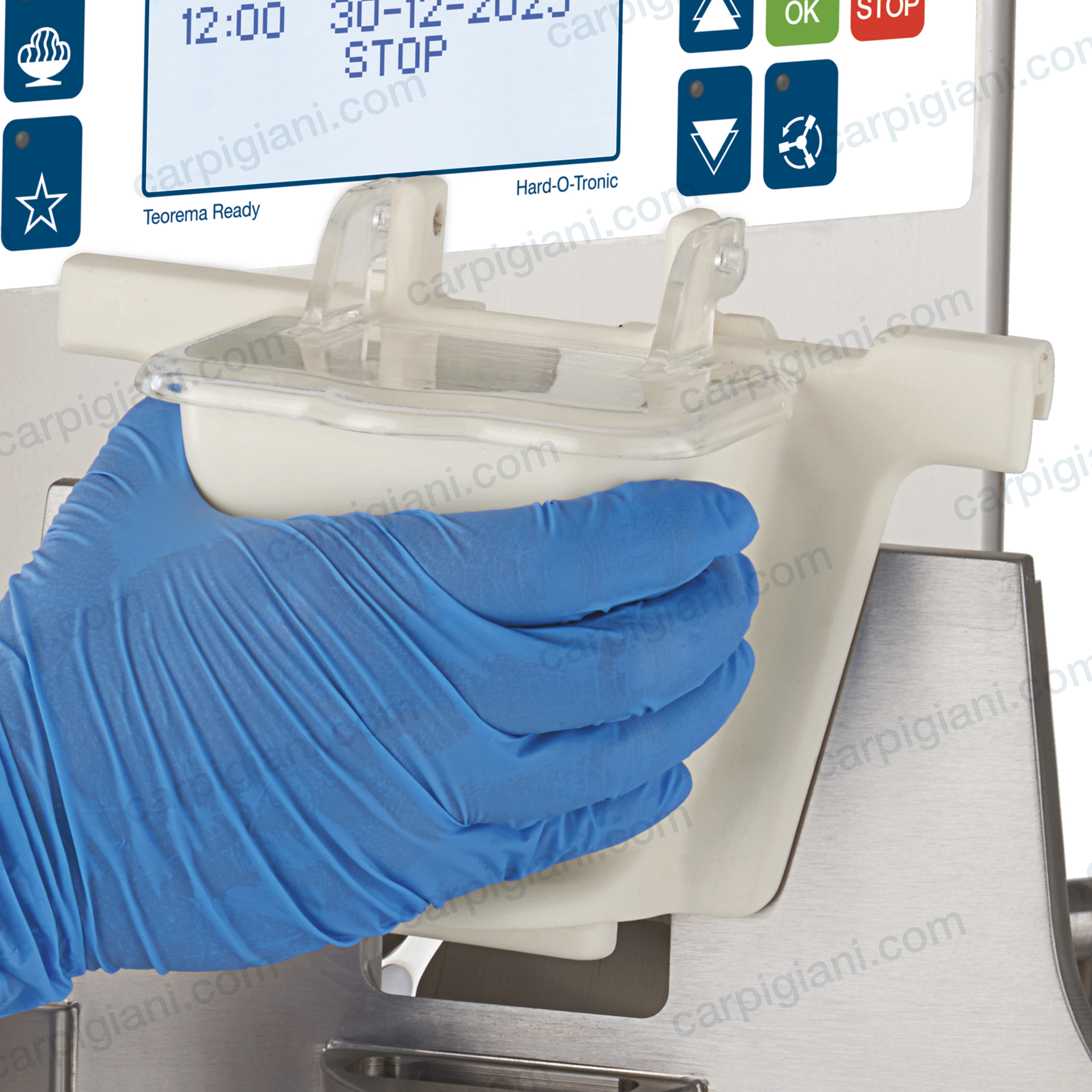 Il est possible d'équiper la machine d'un kit de buses de différentes tailles et formes, en acier ou en plastique, pour décorer les produits rapidement et facilement. La capacité de la cuve est de 2 l. La machine est dotée d'une commande pour la distribution variable ou constante.